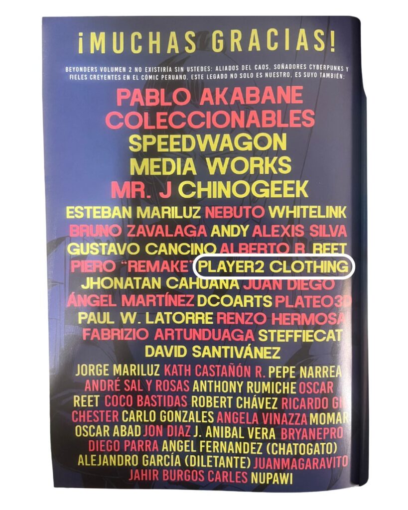 Para celebrar este lanzamiento, Beyonders presentó un exclusivo Box Set que incluye artículos de colección como marcapáginas, stickers, imanes, pósters y portadas alternativas. En Player2 Clothing tuvimos el honor de apuntarnos en este evento y estamos orgullosos de ver nuestra marca en los agradecimientos del Volumen 2.