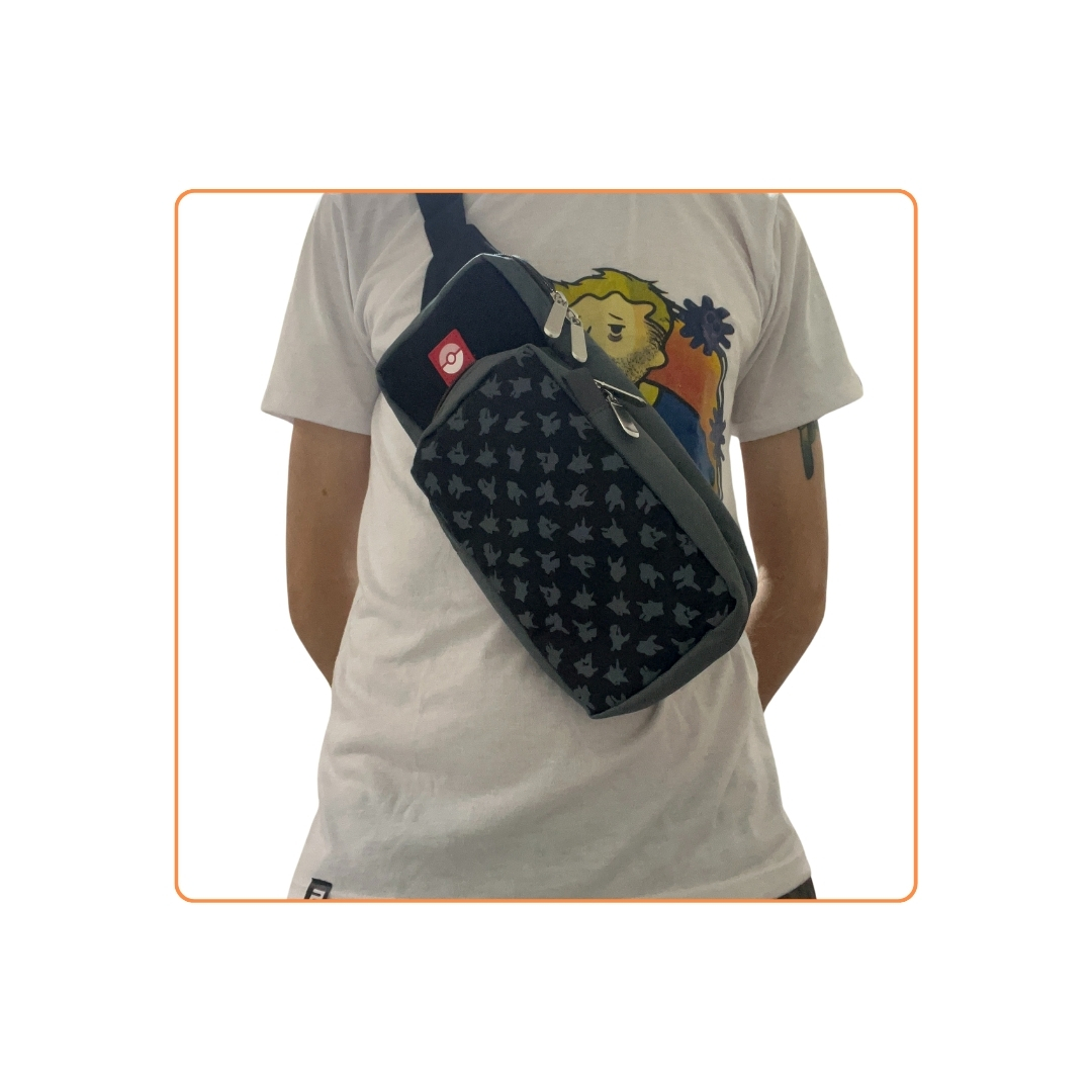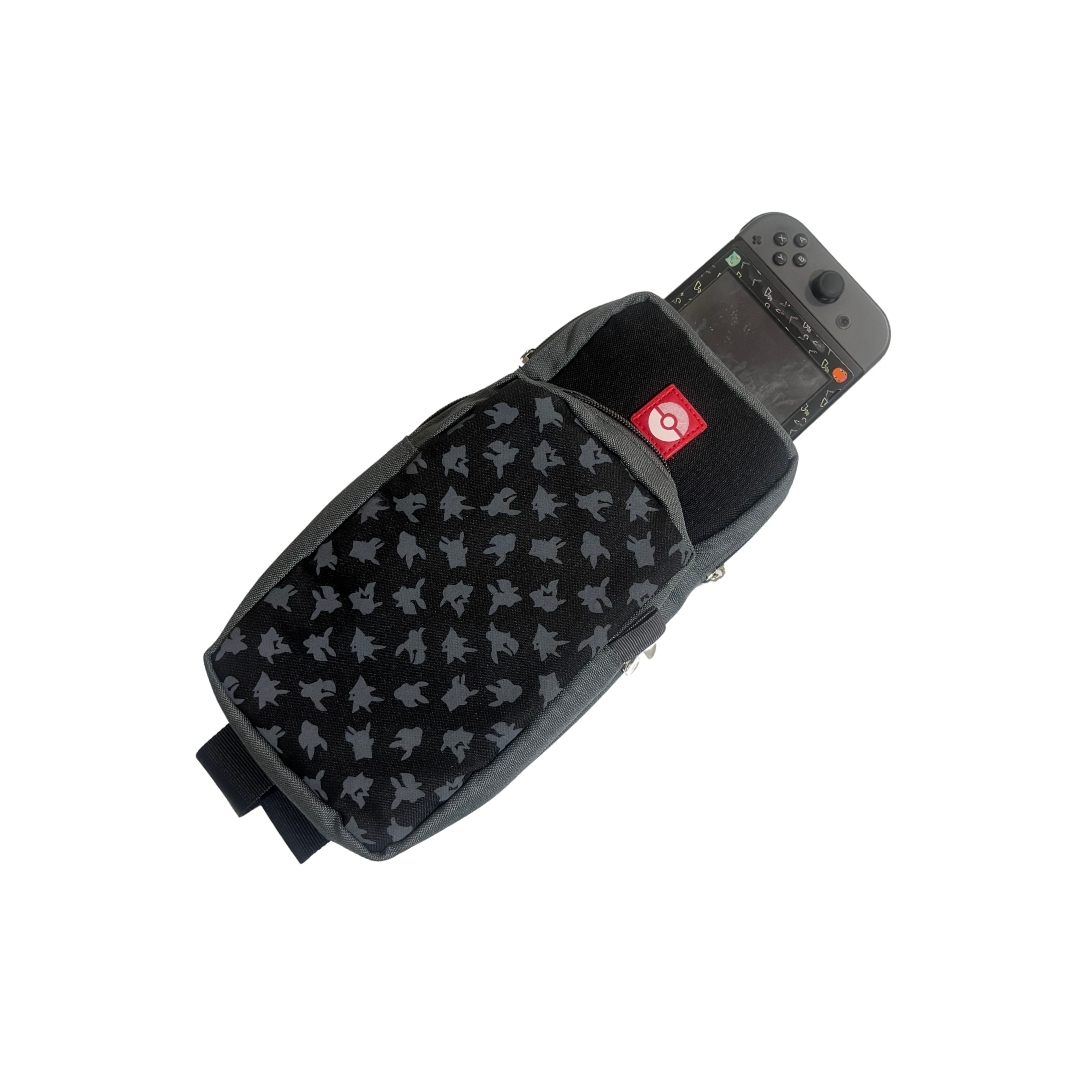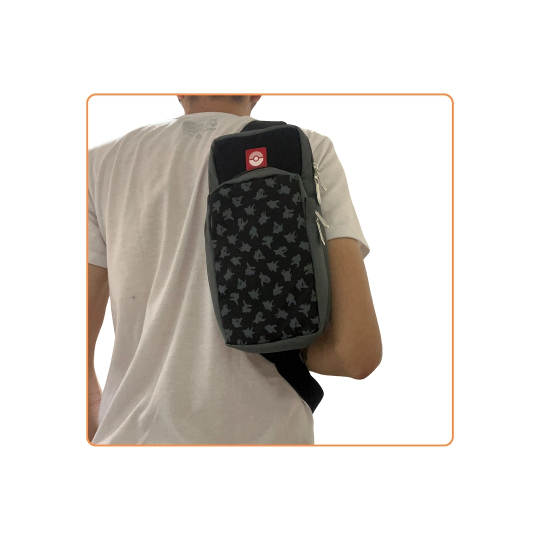 Canguro de Pokémon, ideal para llevar tus pertencias con estilo y buen vestir al mismo tiempo. Puedes almacenar tus agendas, accesorios y más, así como tu consola Nintendo Switch con su dock, cargador y juegos.